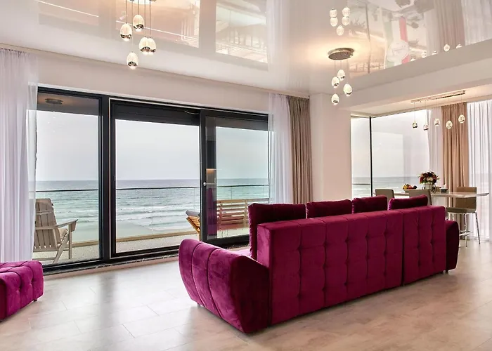 Jeśli masz wczesny lot z Năvodari, Apartament Apartament Sun Smile By R S o powierzchni 65 m^2 leży 30 km od lotniska Konstanca Kogalnice. Położony przy plaży apartament oferuje basen do nurkowania, saunę i odkryty basen.